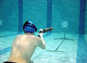 Le relais subaquatique consiste à réaliser par équipe de 4 , 8 tirs sur un plastron de précision, situé à 15 mètres du départ.