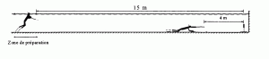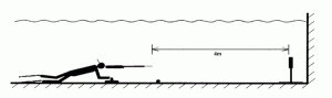 Les tireurs réalisent 3 parcours sous-marins ponctués chacun d’un tir sur la cible. Une ligne de départ est située à 15 mètres de la cible. Au signal, les tireurs s’immergent, se déplacent en apnée jusqu’à la gueuse. Après immobilisation, ils visent et effectuent leur tir.